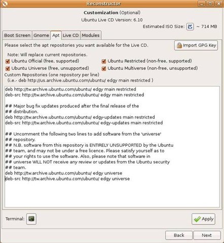 這裡則指定sources.list的內容,將我的內容直接貼上